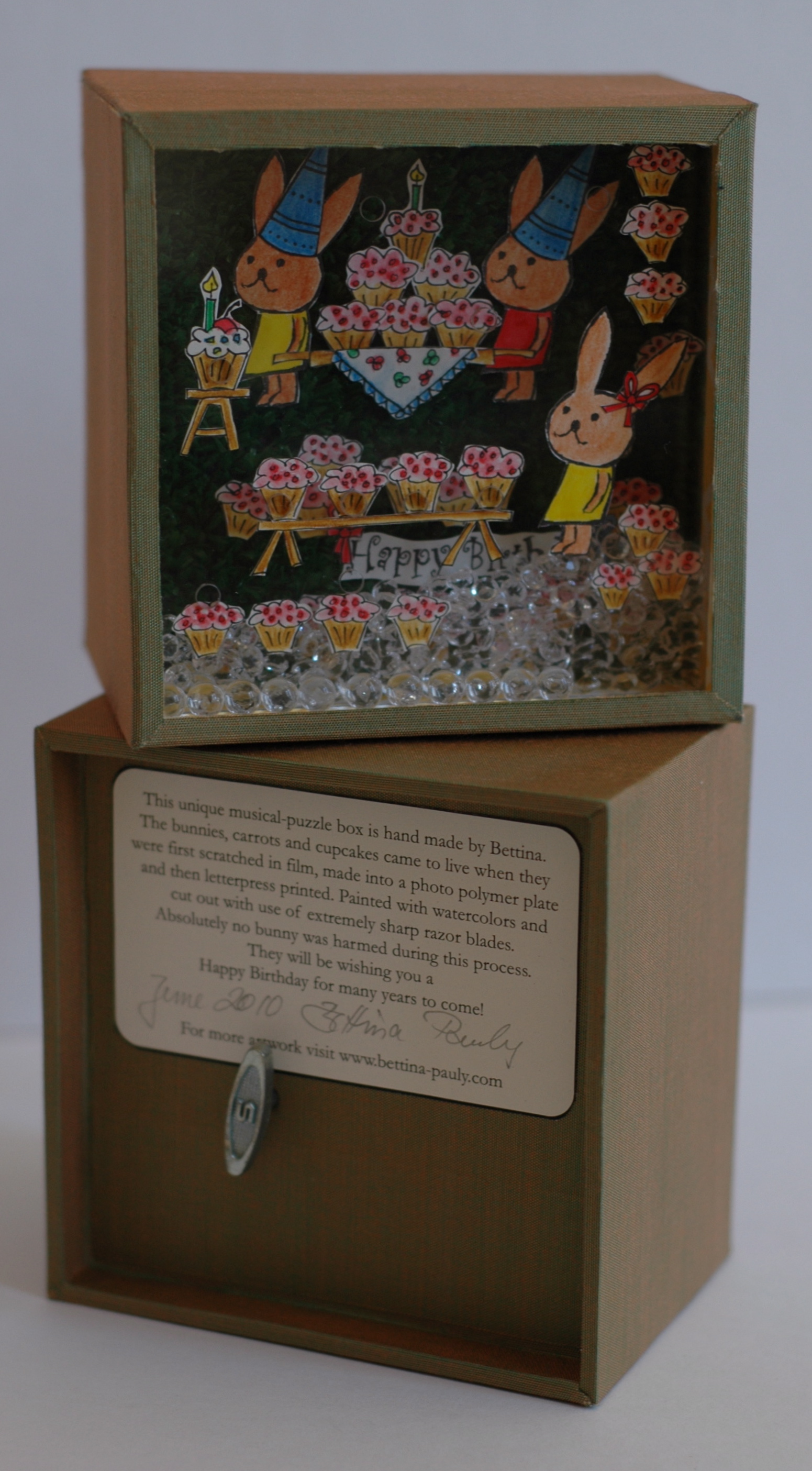 This unique musical-puzzle box is handmade by Bettina.
