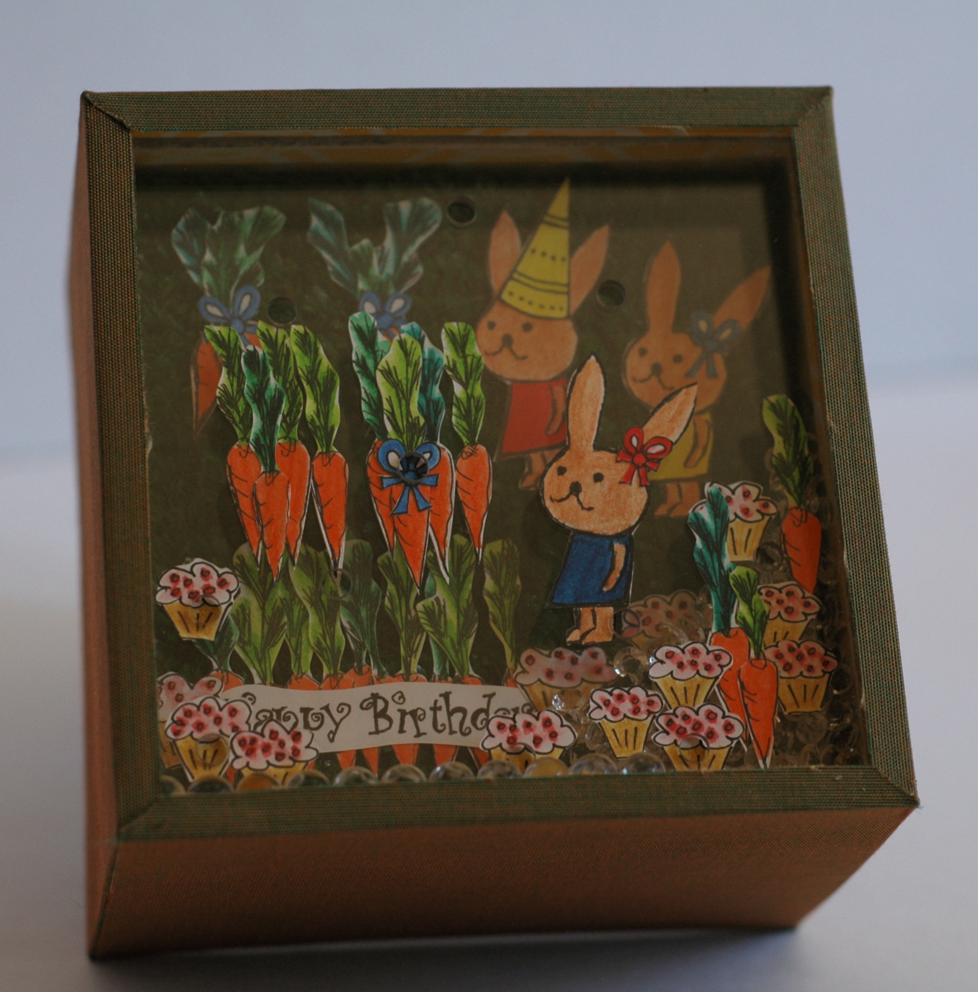 The bunnies, carrots and cupcakes came to life when they were first scratched in film, made into a photopolymer plate and then printed letterpress.