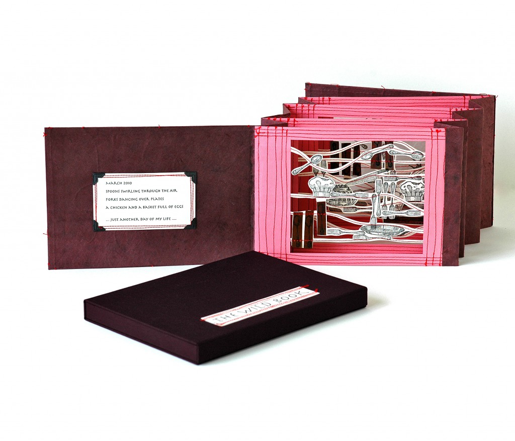 BookOpolis began in 2004 as the inaugural event for Asheville BookWorks. BookOpolis has become a signature annual event showcasing a weekend of Book Arts. The first year, BookOpolis exhibited 60 entries and the next year it rose to 80 then in 2009, they received over 140 entries. Artists’ Books and Prints arrive for BookOpolis from all across the United States and beyond, and exhibited books from Canada, England, Mexico and Australia. During the weekend, BookWorks hosts an ‘open house’ for people to view the BookOpolis exhibit, talk with artists, watch demonstrations, participate in cranking the letterpress or learn a simple binding technique. BookOpolis has introduced Book Arts, Letterpress and Print to many people who never knew. Artists send their BEST work to BookOpolis, work that best integrates Concept and Craft; merging Content and Ideas with Creative Use of Materials, Inventive Construction and Technique.