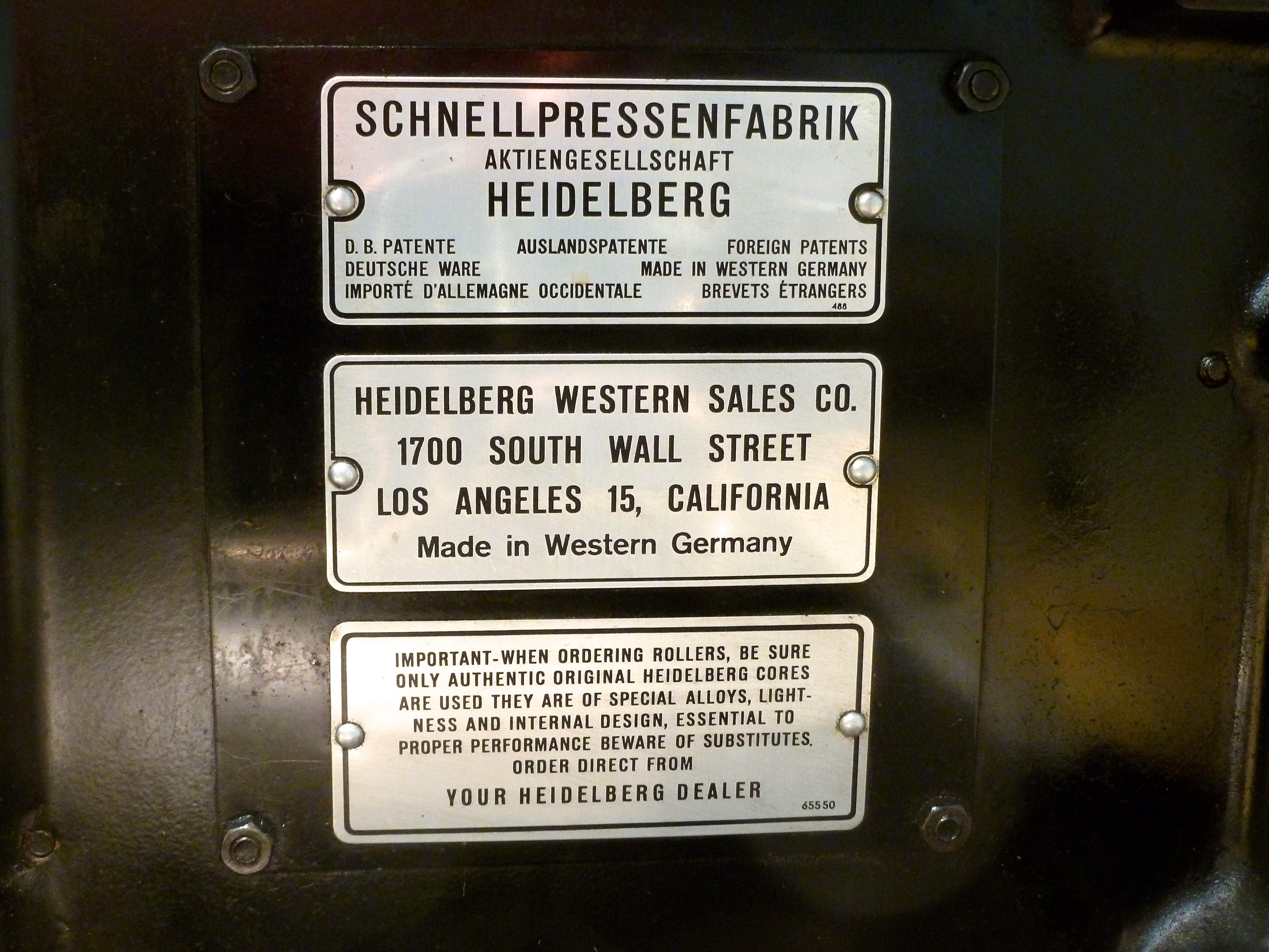 From 1996 to 1998 I studied at Fritz-Gabler Hotel Management School in Heidelberg, Germany. During those years I had no idea what a Heidelberg windmill is. And I would not have dreamed of ever even printing on one of those machines, which are made in Heidelberg, Germany. 11 years later – in 2009 – I started to learn printing on the windmill at Painted Tongue Press in Oakland where I am still working as one of their letterpress printers.