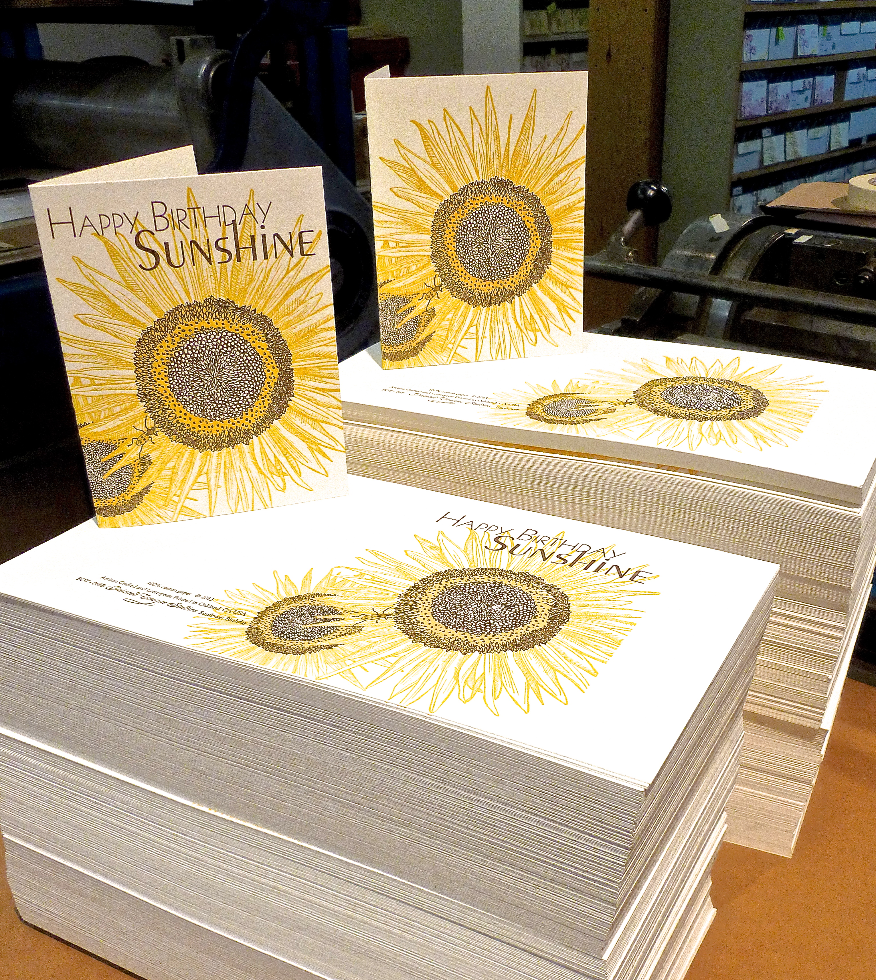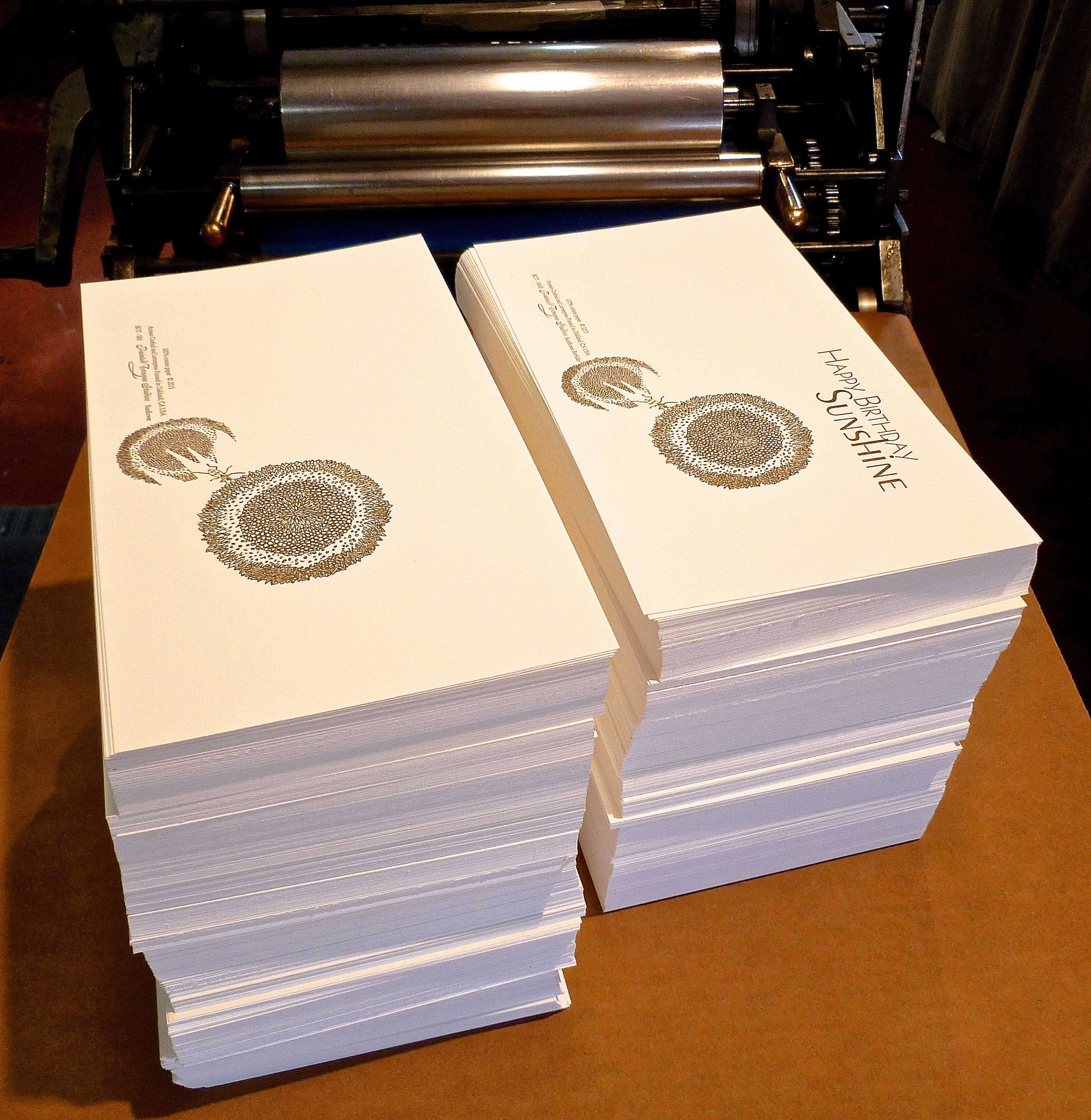 The sunflower is an annual plant native to the Americas. This is our latest addition to the letterpress printed cards Painted Tongue offers. More printing to come! We are super busy at the studio with card printing and custom orders.